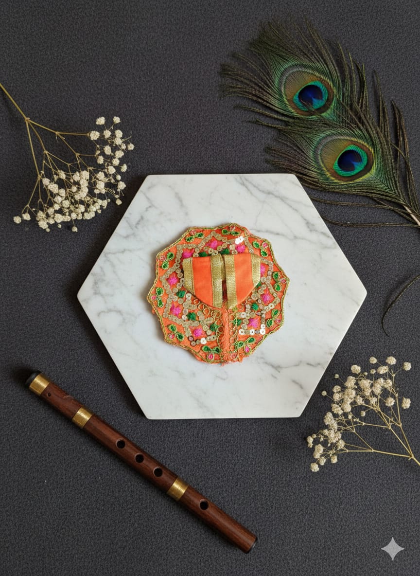 Made with fine-quality fabric and delicate traditional embroidery, this poshak is specially designed for small-sized idols, ensuring a comfortable and perfect fit. The bright colours and intricate detailing add a graceful and devotional touch to your home mandir ๐Ÿ›•โœจ.